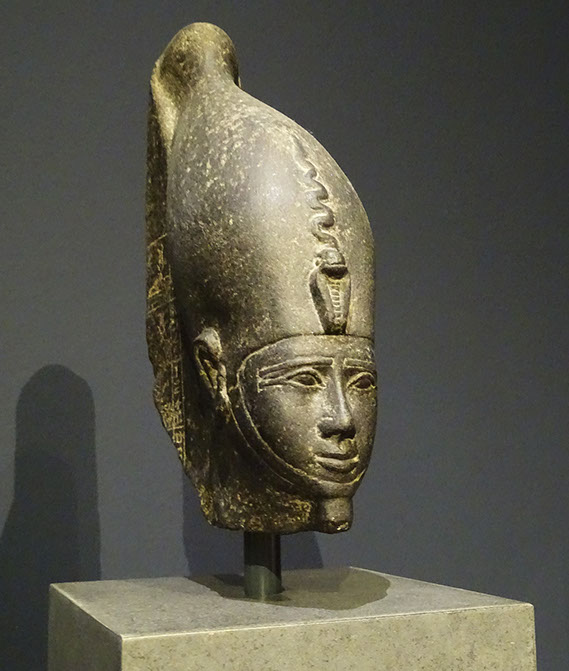 6. Jht v.Chr. Kopf einer Osiris-Figur. Theben, 26-30. Dynastie. Basalt. Liebighaus Frankfurt.