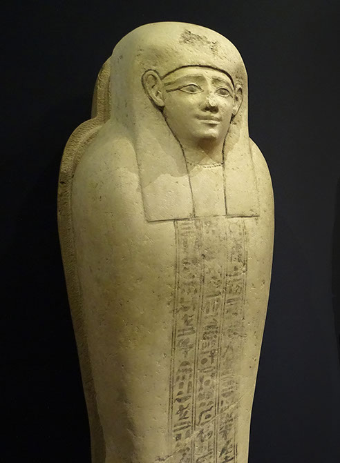 400 v.Chr. Sarkophagdeckel der Pesedjet, Ägypten, 30. Dynastie, Ptolemäerzeit, Kalkstein. Liebighaus Frankfurt.