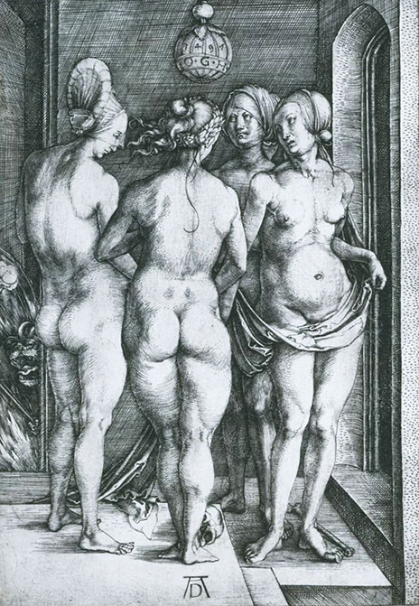 1497-Albrecht Dürer (1471-1528). Vier nackte Frauen, die vier Hexen, 1497. Städel Museum Frankfurt.