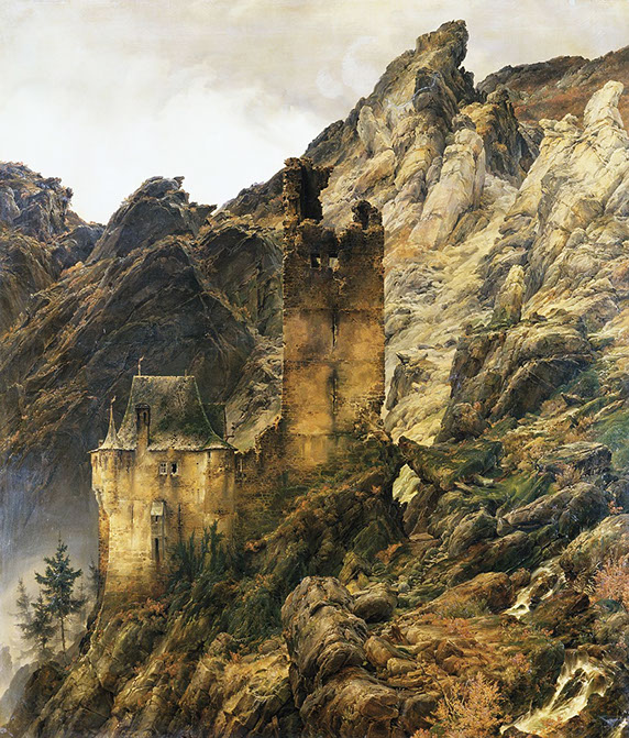 1830-Carl Friedrich Lessing (1808-1880). Felsenlandschaft, Schlucht mit Ruinen, 1830. Städel Museum Frankfurt.