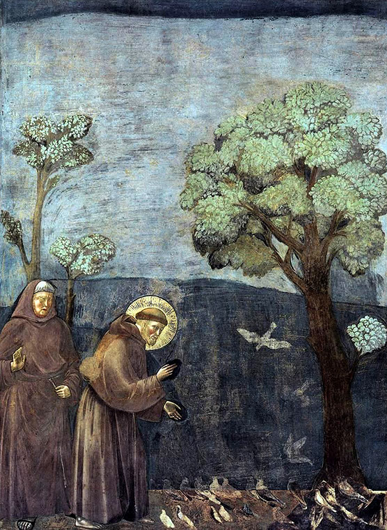 Giotto (1266-1337). Franziskus predigt zu den Vögeln. Kirche San Francesco, Assisi.