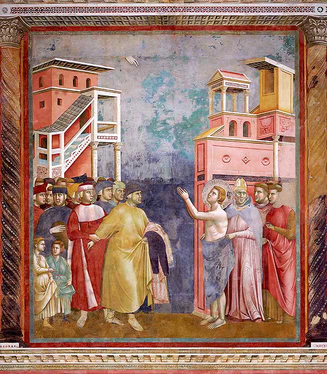 Giotto (1266-1337). Franziskus verzichtet auf irdische Güter. Obere Kirche San Francesco, Assisi.