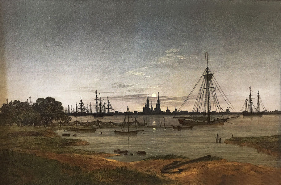 1818-Caspar David Friedrich (1774-1840). Der Greifswalder Hafen, 1818-20. Alte Nationalgalerie Berlin.