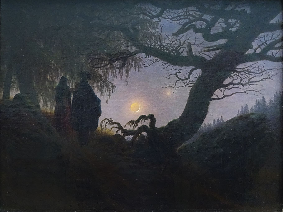 1818-Caspar David Friedrich (1774-1840). Mann und Frau den Mond betrachtend, 1818-25. Alte Nationalgalerie Berlin.