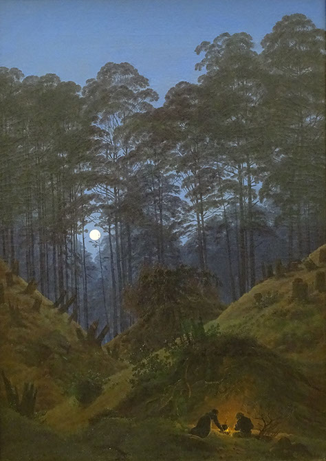 1823-Caspar David Friedrich (1774-1840). Waldinneres bei Mondschein, 1823-30. Alte Nationalgalerie Berlin.