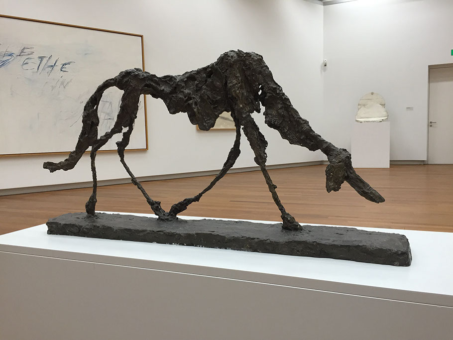 Alberto Giacometti, Homme qui marche, 1947. In Hintergrund zweimal die stehende Frau, 1948.