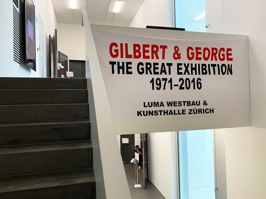 Ausstellung Gilbert & George THE GREAT EXHIBITION 1971-2016. Kunsthalle und Luma Westbau, Zürich. 20.4.-12.7.2020.