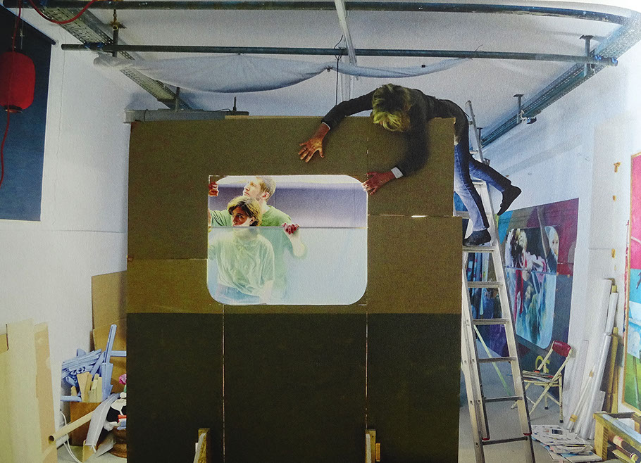 Arbeitstechnik der Künstlerin: Aufbau der Kulissen im Atelier.