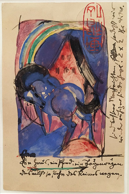 Franz Marc (1880-1916). Pferd und Haus mit Regenbogen. Postkarte an Paul Klee, 1913. Ahlers Collection.