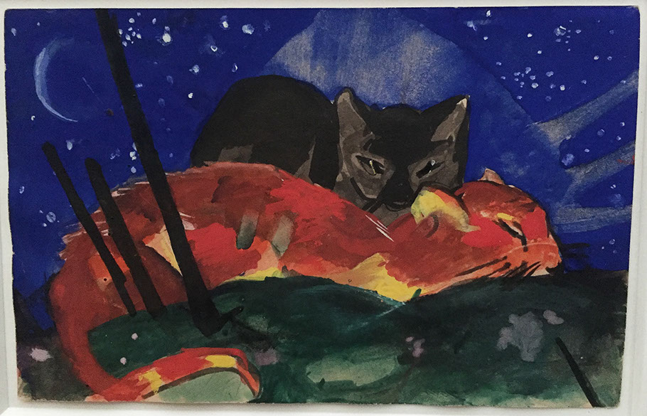 Franz Marc (1880-1916). Zwei Katzen, 1913. Postkarte an Lilly Klee. Ahlers Collection.
