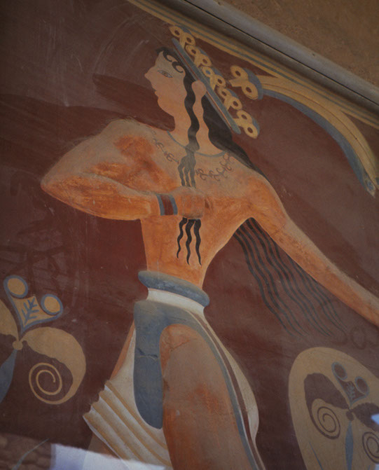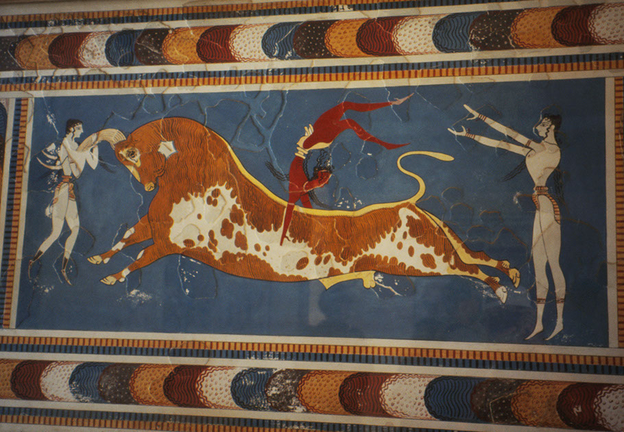 Das berühmteste Gemälde von Knossos: Fresko «Stierspiele». Im Salto über den Stier!