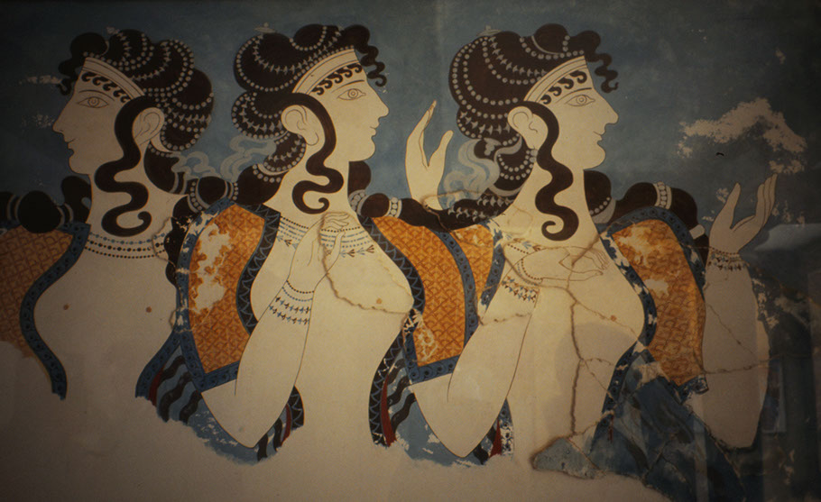 Fresko auf blauem Untergrund, «Die blauen Damen».