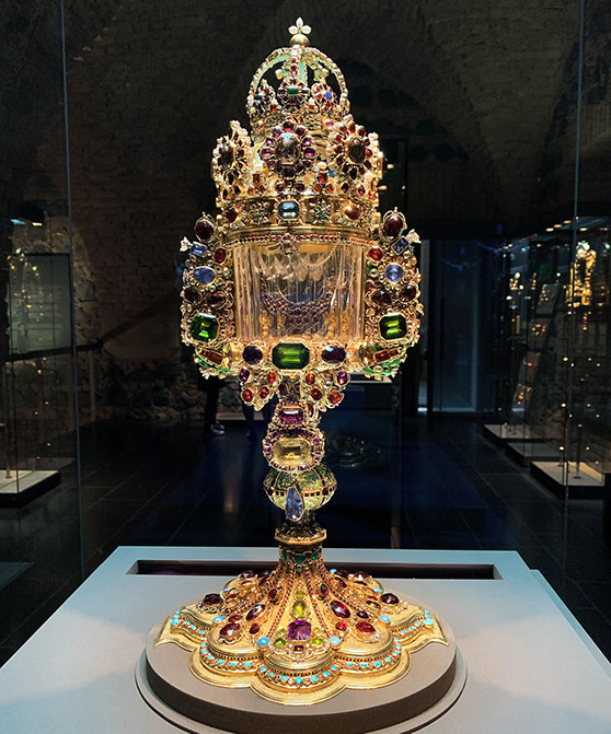 Prunkmonstranz, 1657. Reines Gold und Silber, Perlen, Bergkristall, Edelsteine.