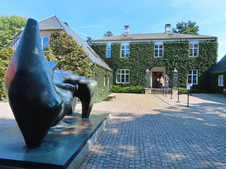 Eingang zum Louisiana-Museum, alte Villa. Skulptur von Henry Moore.