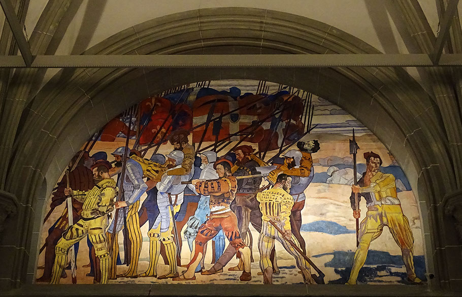 Ferdinand Hodlers berühmter «Rückzug aus Marignano 1515» in den Bögen der Ruhmeshalle, 1896.