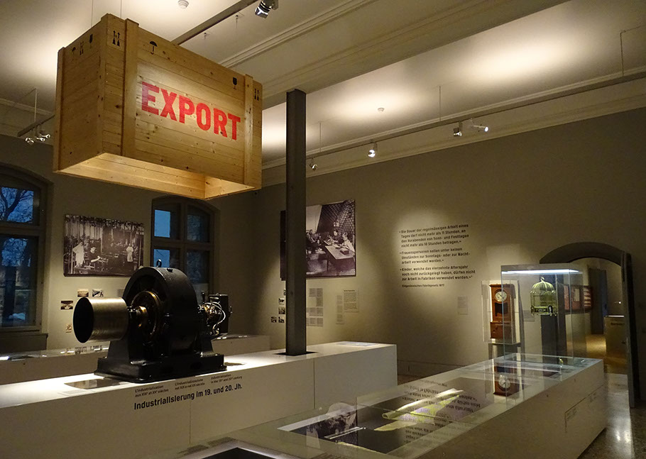 Die moderne Schweiz: Industrialisierung und Export sind das Thema in diesem Saal.