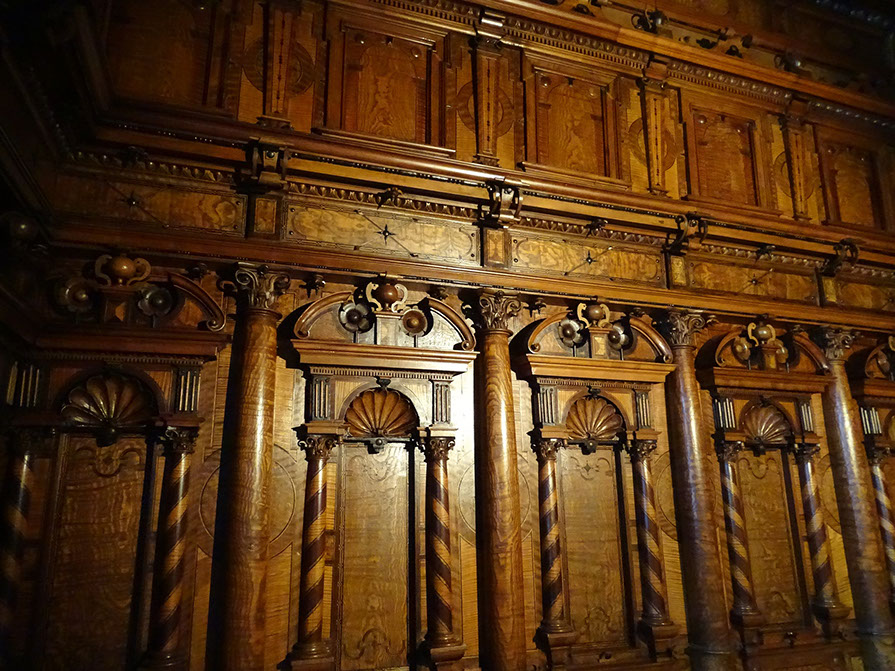 Original-Zimmer des Alten Seidenhofes, Zürich. Um 1620. Vertäfelung mit Intarsien.