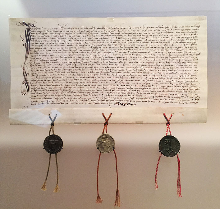 Der Morgartenbrief von 1315 ist ein Bündnisvertrag zwischen Uri, Schwyz und Unterwalden.