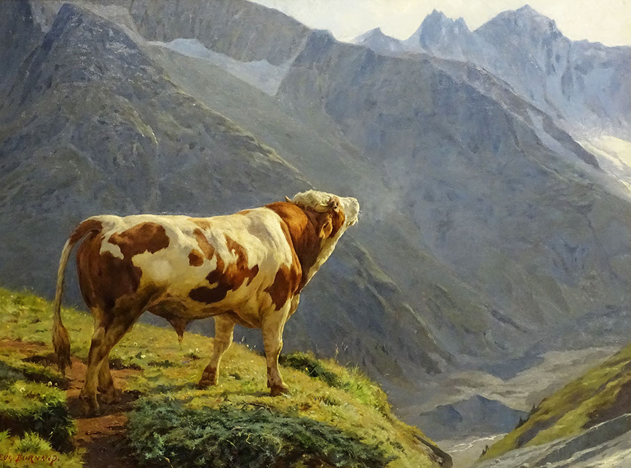 Eugène Burnand (1850-1921). Taureau dans les Alpes, 1884. Musée cantonal Lausanne.