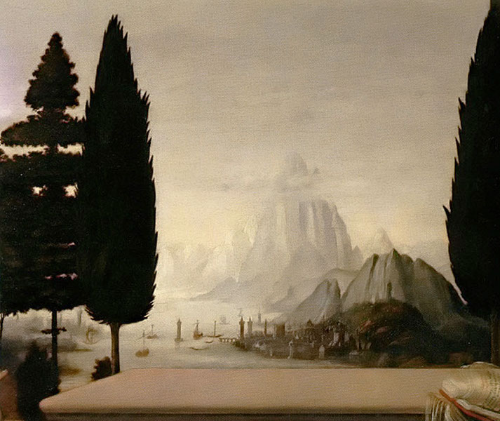 Leonardo da Vinci (1452-1519). Landschaft, Detail aus Annunciazione, 1472. Galleria degli Uffizi, Firenze.