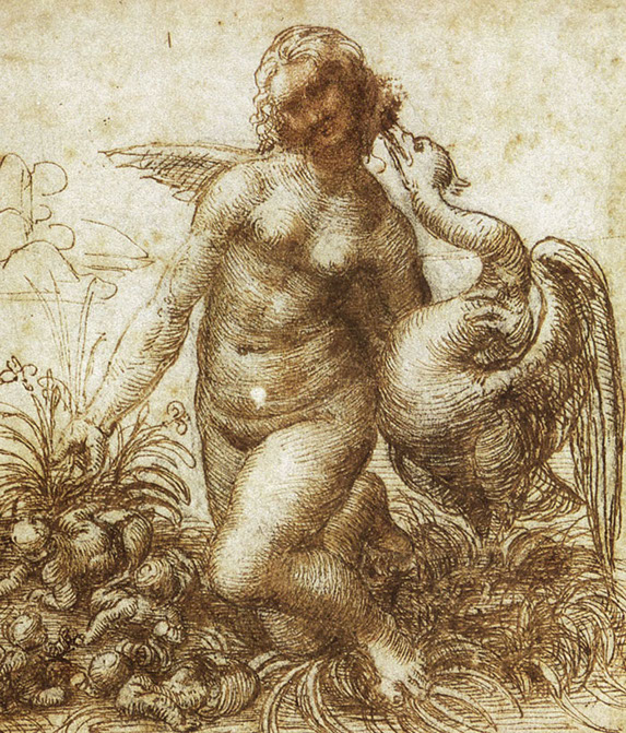Leonardo da Vinci (1452-1519). Studie für Leda und der Schwan, 1505-07. WikiCommons.