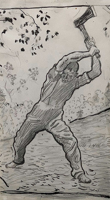 Ferdinand Hodler (1853-1918). Der Holzfäller, 1910. Bleistift und Tusche auf Papier. Privatbesitz.