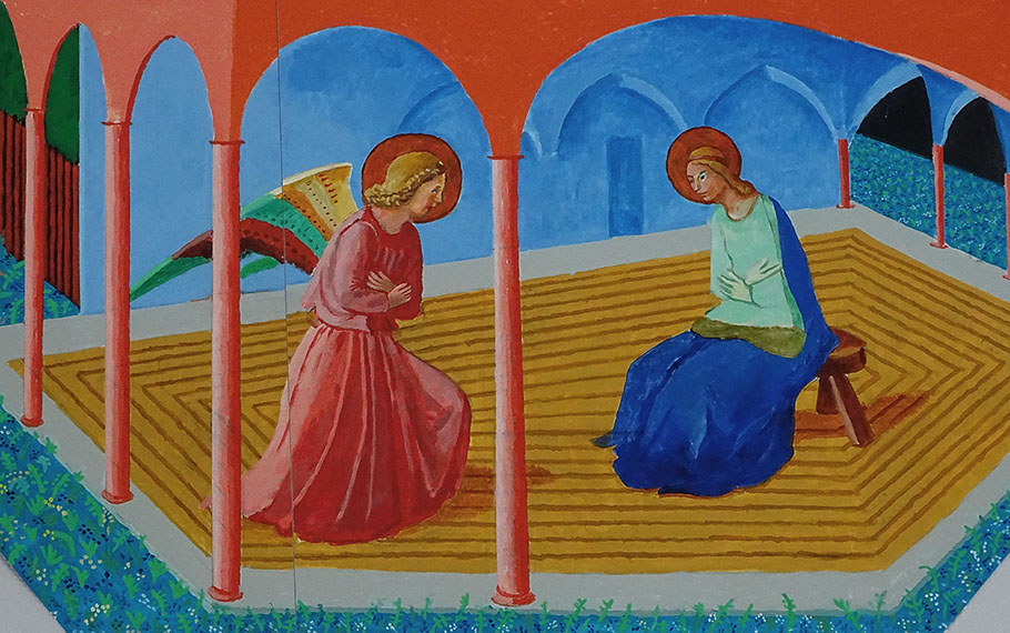 2017-David Hockney (1937). Im Studio in Los Angeles, digitale Collage. Detail Kopie Fra Angelico. Tate London.