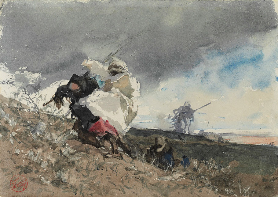 Mariano Fortuny (1871-1949). Arabes caminando bajo la tempestad, 1860-65. Biblioteca Nacional de España.