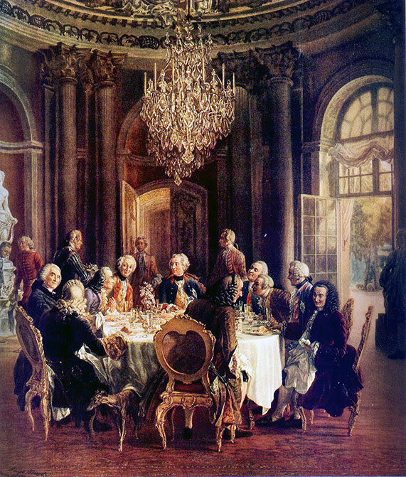 1850-Adolph von Menzel (1815-1905). König Friedrichs II Tafelrunde in Sanssouci, 1850. Alte Nationalgalerie Berlin.