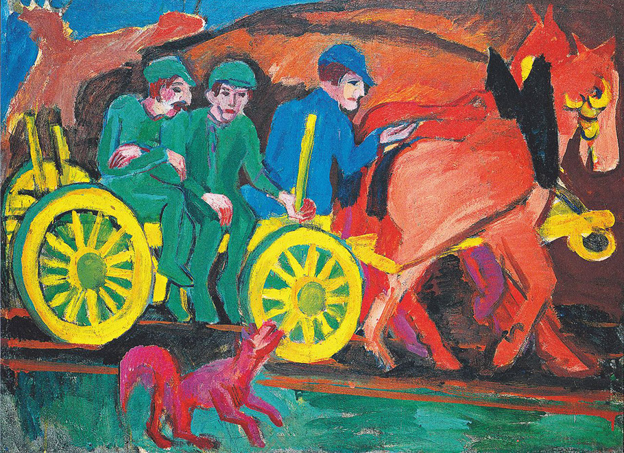 Ernst Ludwig Kirchner (1880-1938). Pferdegespann mit drei Bauern, 1920-21. Merzbacher Kunststiftung.