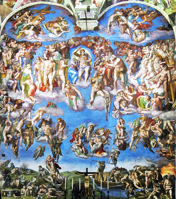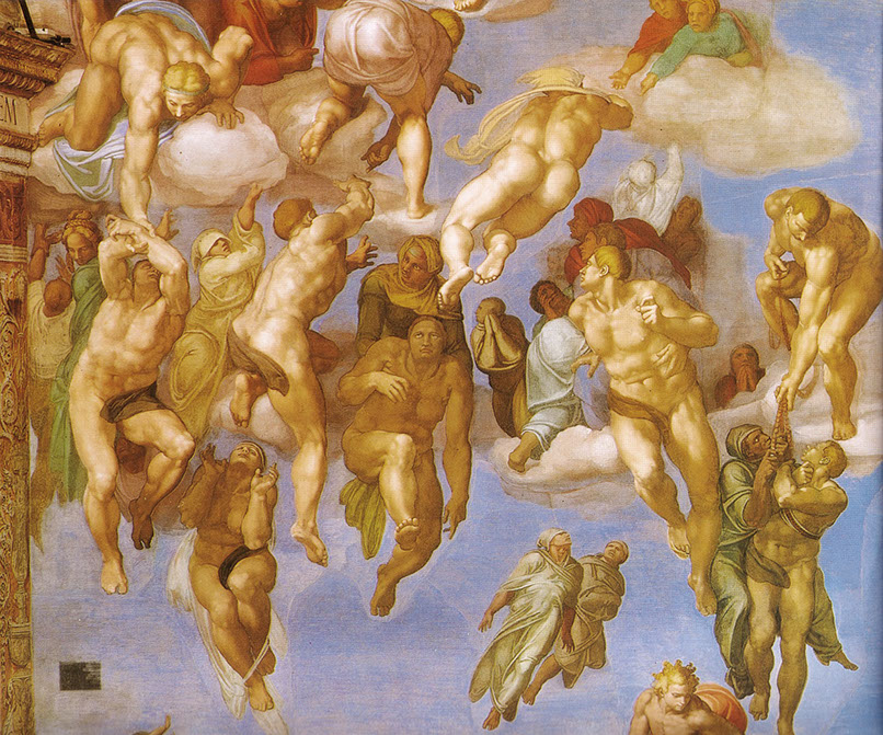 Michelangelo (1475-1564). Das jüngste Gericht, Ausschnitt. 1537-41. Sixtinische Kapelle, Rom. Foto wga.hu. Wiki.