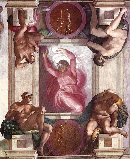 Michelangelo (1475-1564). Decke der Sixtinischen Kapelle (Ausschnitt), Foto Aaron Logan, WikiCommons.
