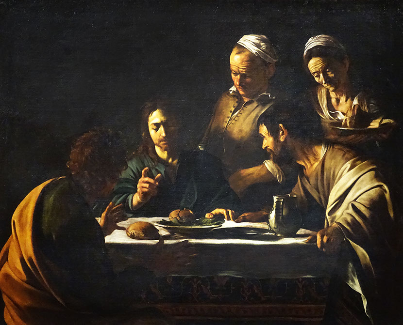 Caravaggio (Michelangelo Merisi 1571-1610). Cena in Emmaus, 1605. Nicht in der Sammlung, Sonderausstellung.