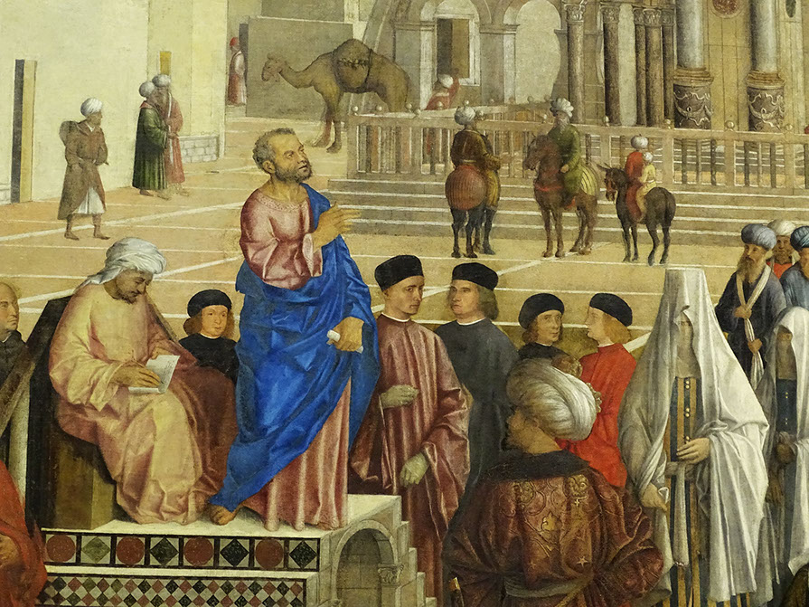 Gentile Bellini (1432-1507 e Giovanni Bellini (1430-1516). Predica di San Marco in Alessandria, 1504-1507. Brera Milano.