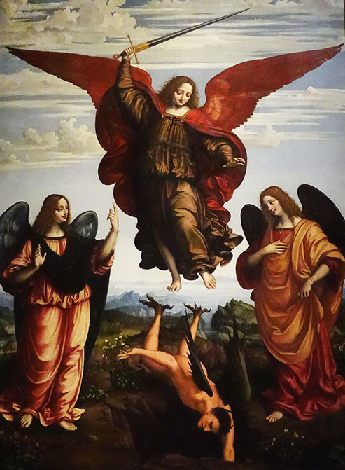 Marco d'Oggiono (1465-1524). Heiliger Michael besiegt den Satan. Brera Milano.