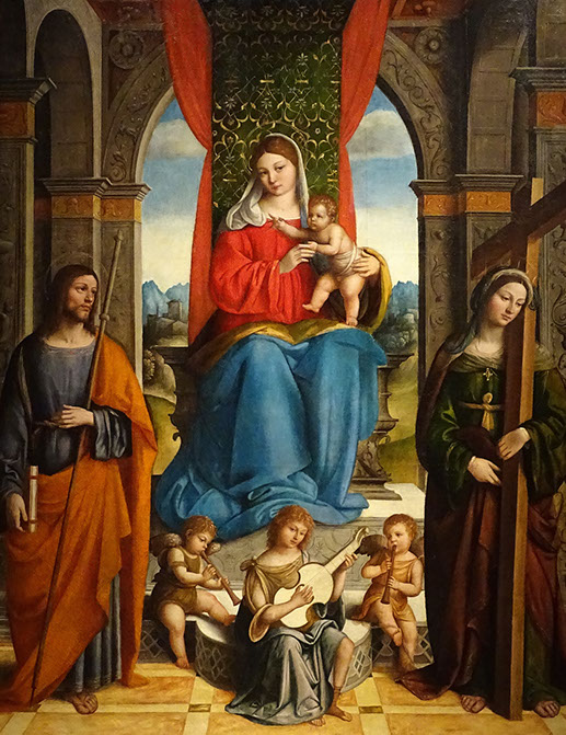Nicolo Pisano (1470-1538). Madonna col Bambino e i Santi Giacomo di Galizia ed Elena, 1512-14. Brera Milano.