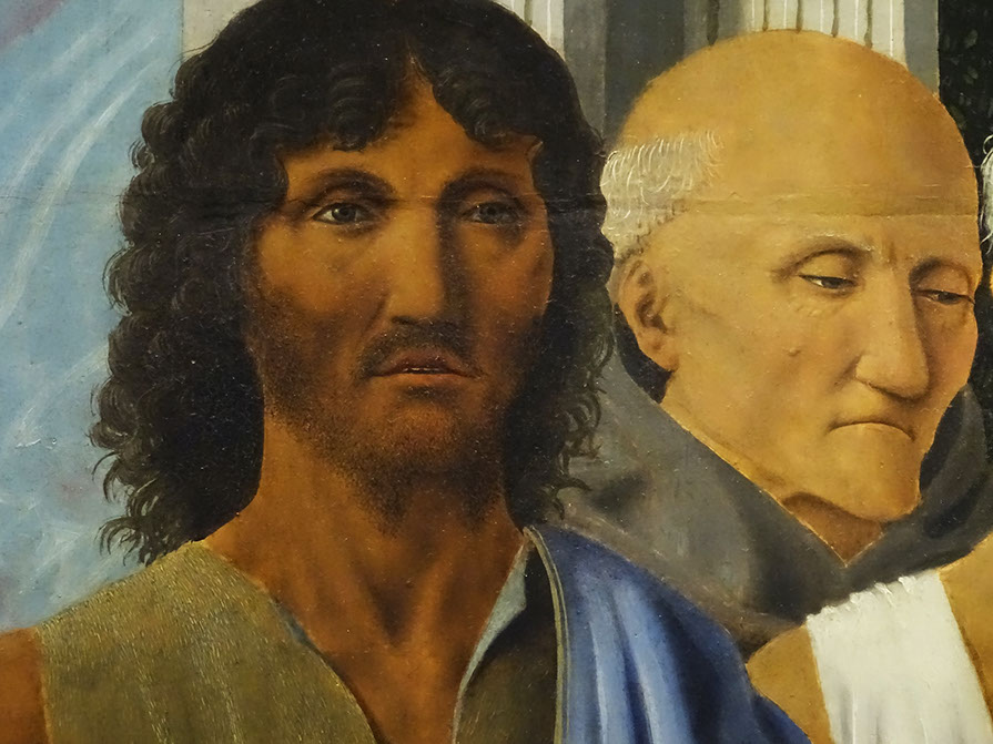Piero della Francesca (1414-1492). Madonna col Bambino e Santi, Angeli e Federico da Montefeltro, 1465-70. Detail.