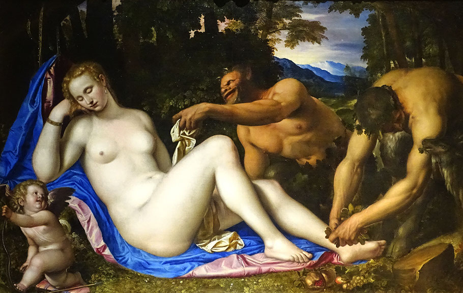 Simone Peterzano (1540-1596). Venere e Cupido con due Satiri, 1570-73. Brera Milano.