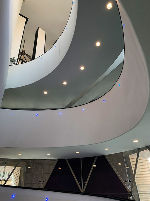 Blick aus dem 3. Stock auf den Mailänder Dom. Neon-Installation von Lucio Fontana (1899-1968).