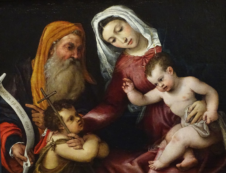 Lorenzo Lotto (1480-1556). Madonna col Bambino e i Santi Giovanni Battista e Zaccaria, 1546. Pezzoli Milano.