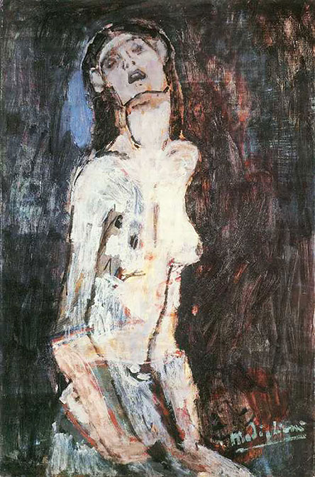 1908-Amedeo Modigliani (1884-1920). Leidender Akt, 1908. Richard Nathanson London. zeno.org. WikiCommons.