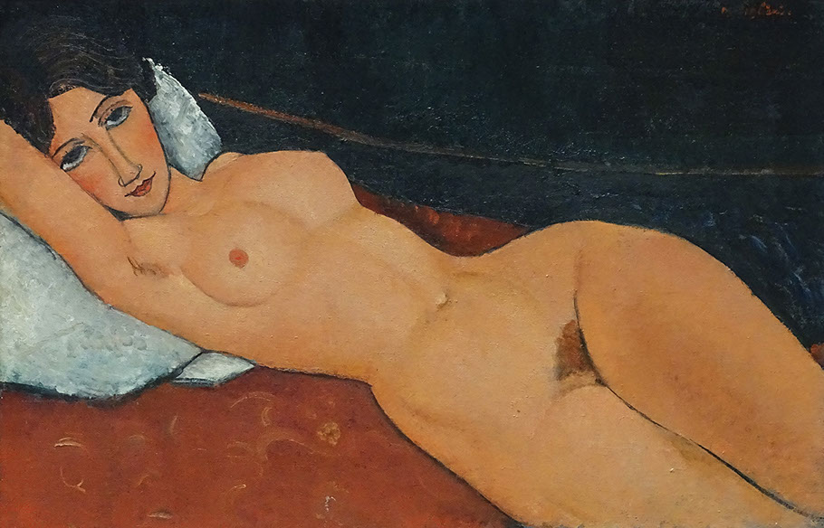 1917-Amedeo Modigliani (1884-1920). Nu couché, 1917. Collection Liu Yiqian, Shanghai. WikiCommons.