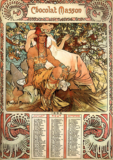 1897-Alfons Mucha (1860-1939). Werbung für Chocolat Idéal, 1897. Foto WikiArt.