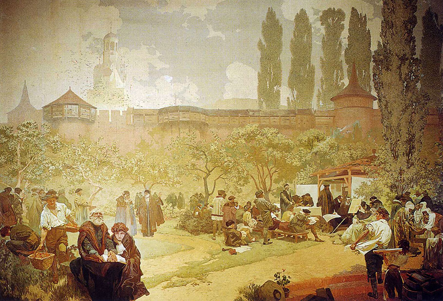 1912-Alfons Mucha (1860-1939). Einführung der Slawischen Lythurgie, 1912. Mucha Museum Prag.