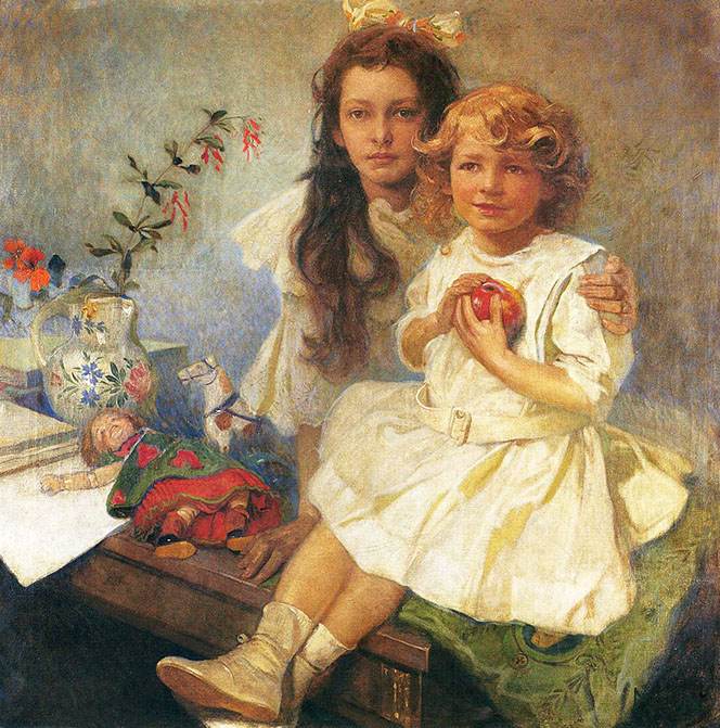 1919-Alfons Mucha (1860-1939). Jaroslava and Jiri, the Artist's Children, 1919. Mucha Museum Prag.