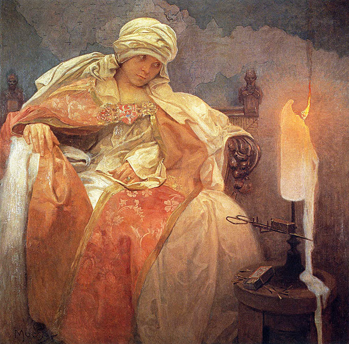 1933-Alfons Mucha (1860-1939). Frau mit brennender Kerze, 1933. Mucha Museum Prag.