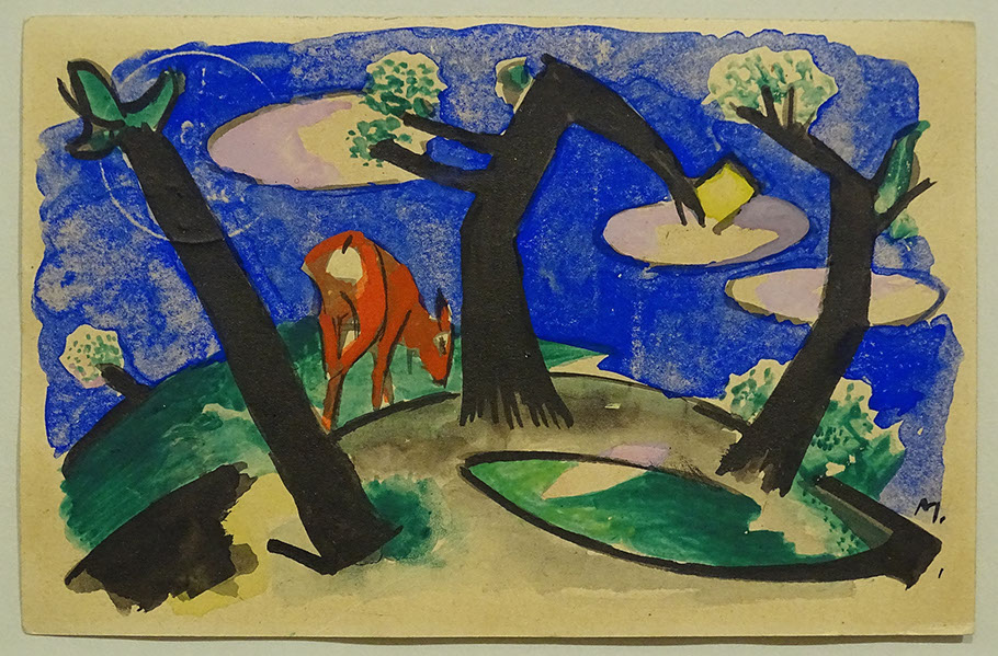 Franz Marc (1880-1916). Landschaft mit rotem Tier, 1913. Postkarte an Alfred Kubin, 1914.