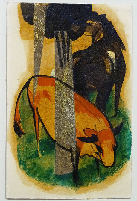 Franz Marc (1880-1916). Postkarte an Alfred Kubin, 1913. Pferd und Rind.