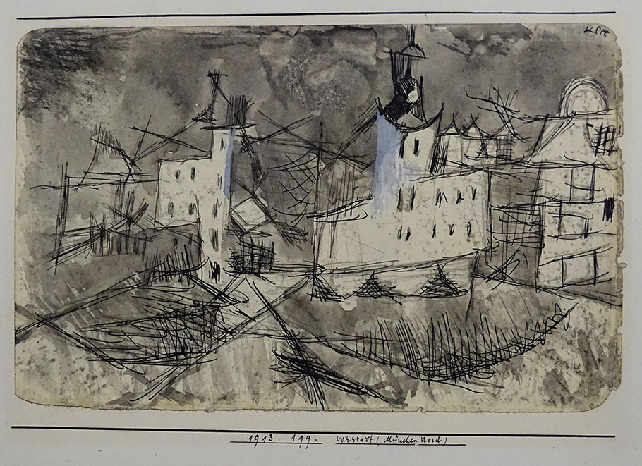 Paul Klee (1879-1940). Vorstadt (München-Nord), 1913. Tusche, Bleistift mit Deckweiss.
