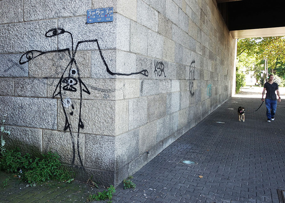 Harald Naegeli (1939). Düsseldorf, Joseph-Beuys-Ufer, Unterführung, 2016. Foto Kürschner, WikiCommons.